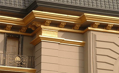 GRC和EPS構(gòu)件的廣泛適用于別墅、歐式風(fēng)格小區(qū)、酒店及商業(yè)街等建筑的門窗套、檐角線、腰線及庭柱等部位。