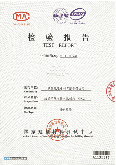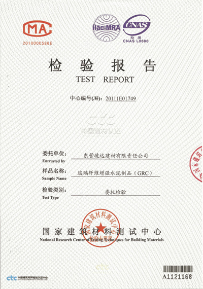 GRC水泥構(gòu)件檢測報告
